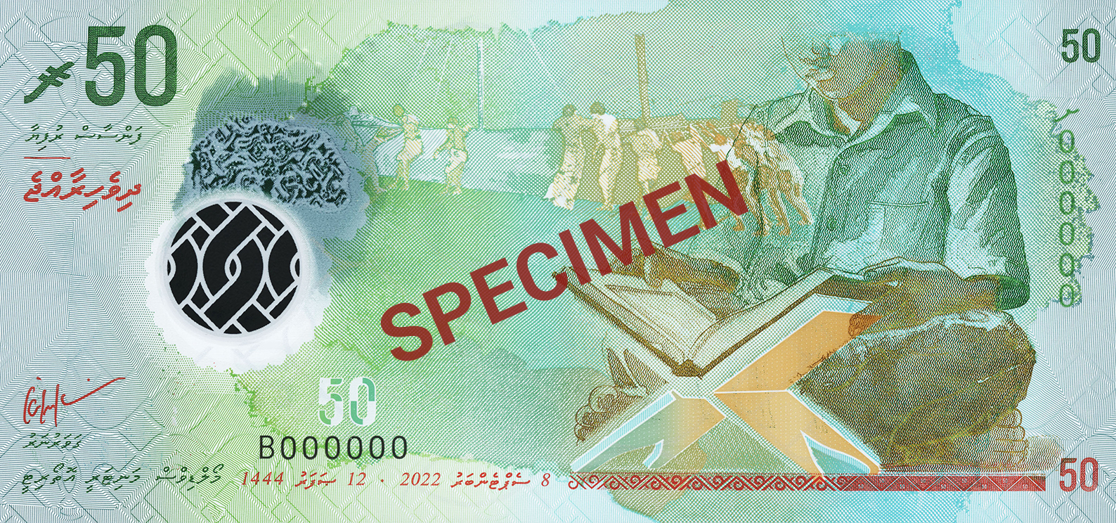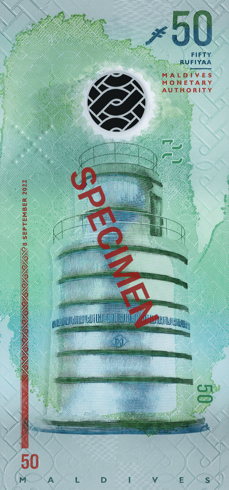13 listopada 2022 r. Urząd Monetarny Malediwów (Maldives Monetary Authority; MMA) wprowadził do obiegu zmodyfikowany banknot o nominale 50 rupii malediwskich z nowym symbolem waluty narodowej