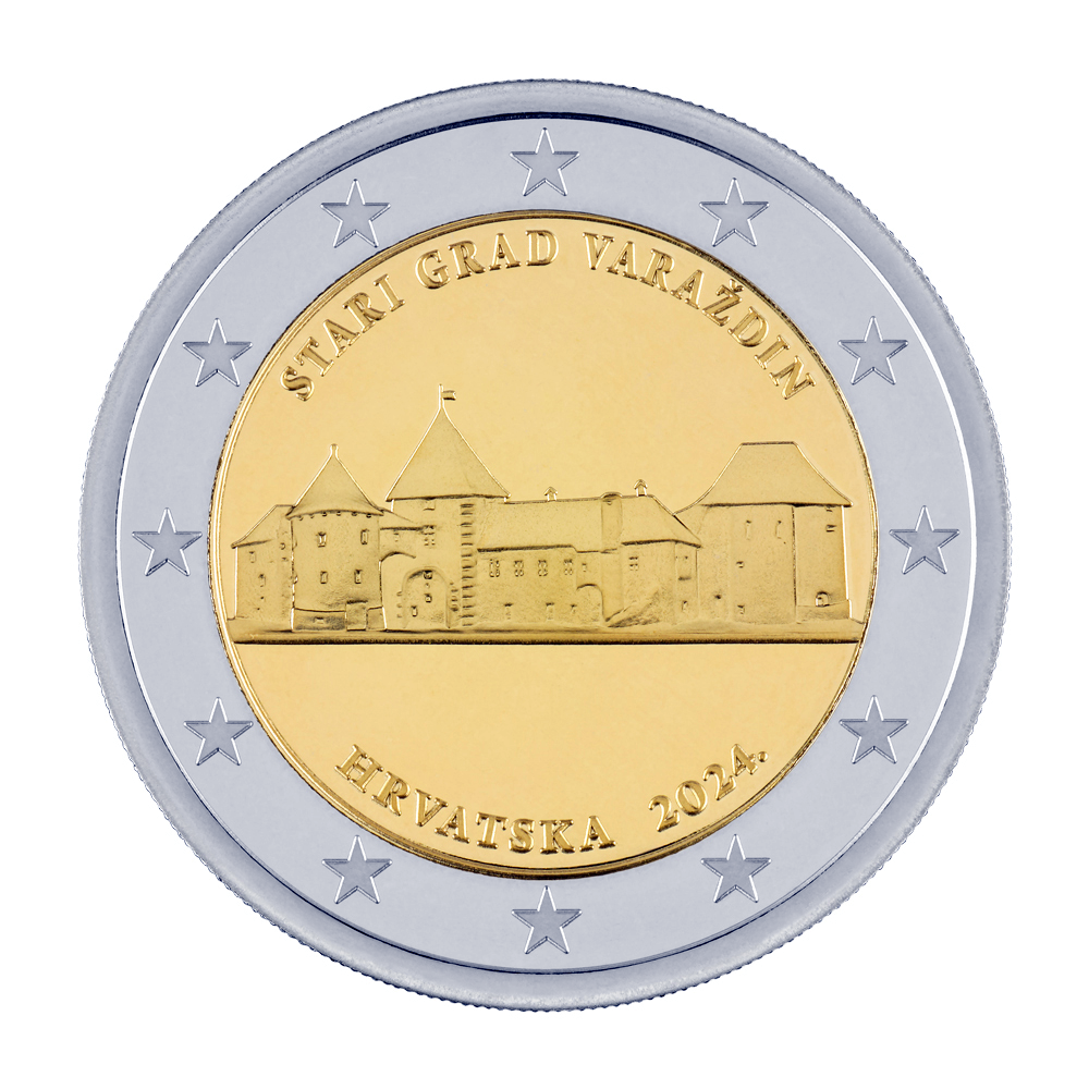 Strona narodowa (awers): Na pierścieniu dwanaście unijnych gwiazd; Na krążku kompozycja przedstawiająca twierdzę Stare Miasto w Varaždinie. U góry wzdłuż granicy krążka napis: STARI GRAD VARAŽDIN. U dołu nazwa państwa i rok emisji: HRVATSKA 2024. (z kropką na końcu)