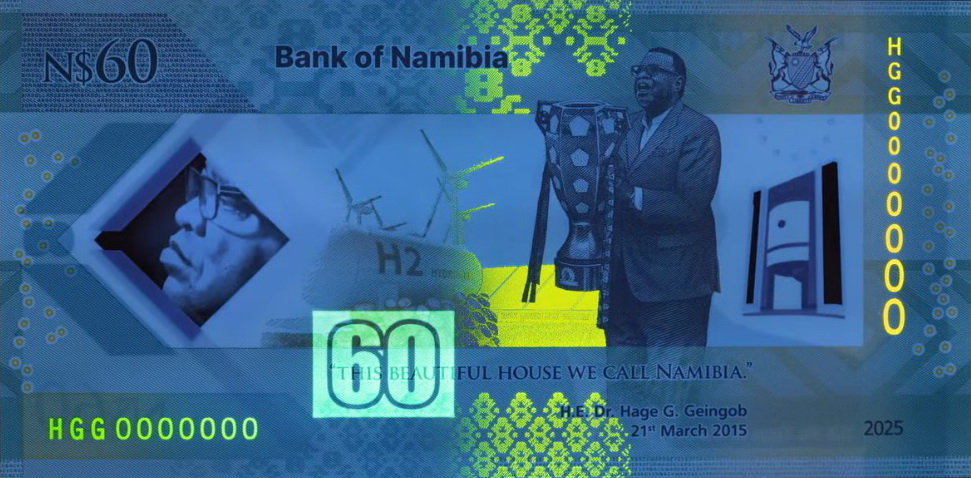 5 marca 2025 r. Bank Namibii (Bank of Namibia, BoN) zaprezentował banknot okolicznościowy upamiętniający Hage’a Geingoba