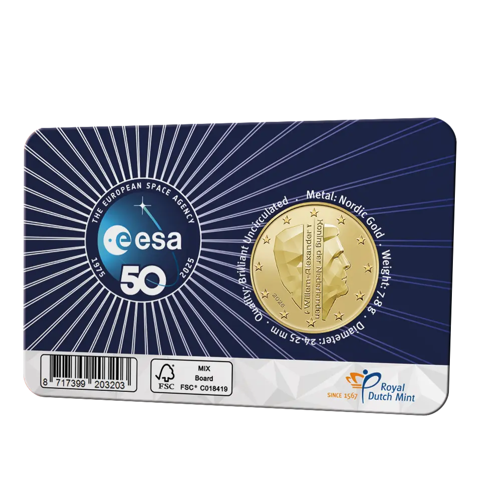 Królewska Mennica Belgii (Koninklijke Munt van België) wyemitowała monetę kolekcjonerską 50. lat Europejskiej Agencji Kosmicznej