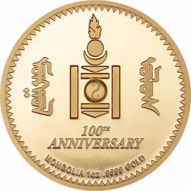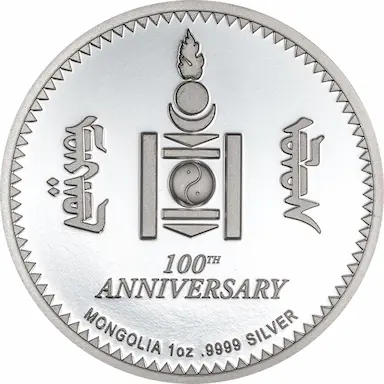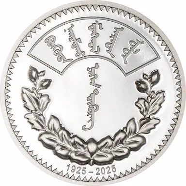 Emisja z okazji 100. rocznicy wprowadzenia do obiegu narodowej waluty Mongolii. Projekt monet opiera się na srebrnej monecie obiegowej 1 tugrika z 1925 r.