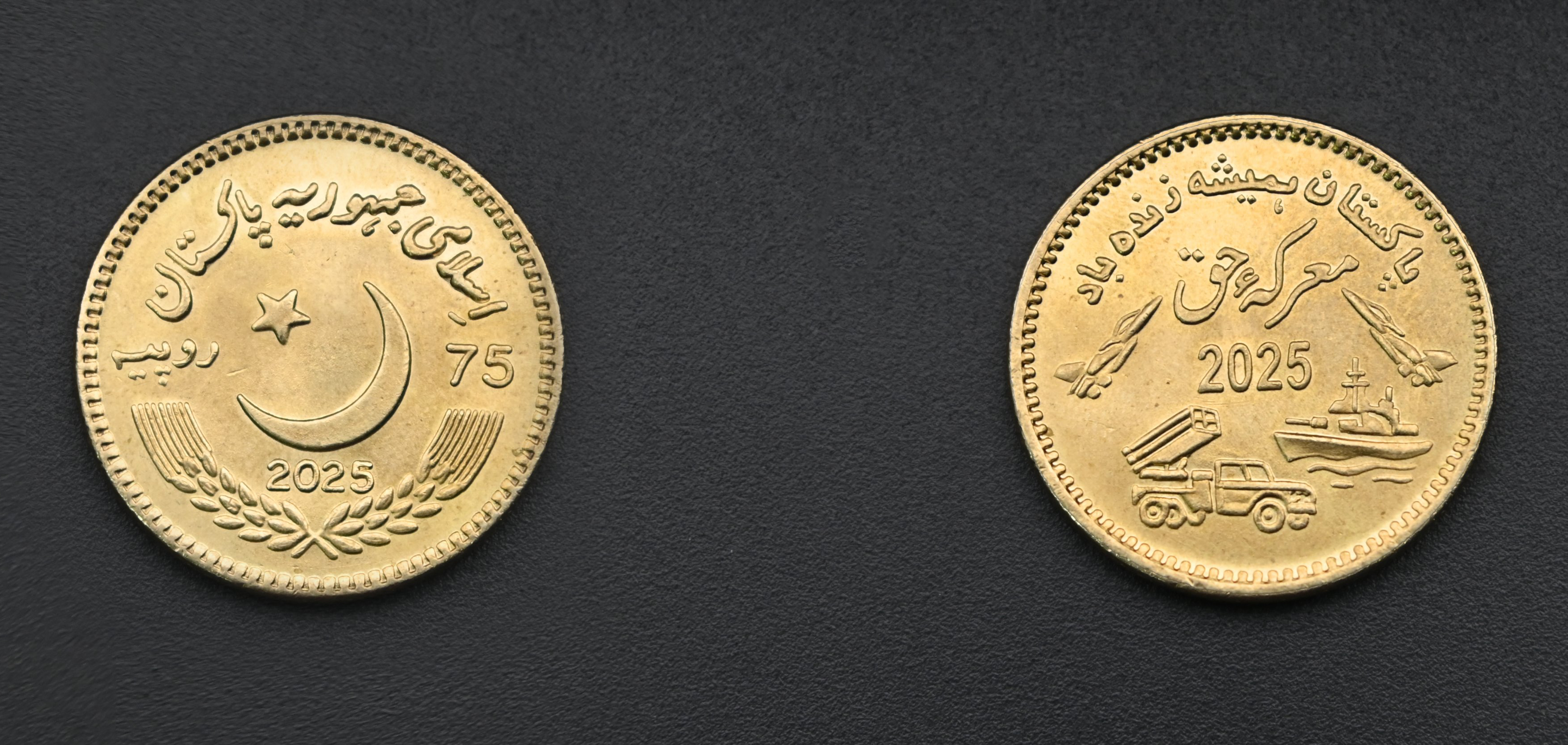15 sierpnia 2025 r. Państwowy Bank Pakistanu (بینک دَولتِ پاکِستان / State Bank of Pakistan, SBP) wyemitował monetę okolicznościową Marka-e-Haq