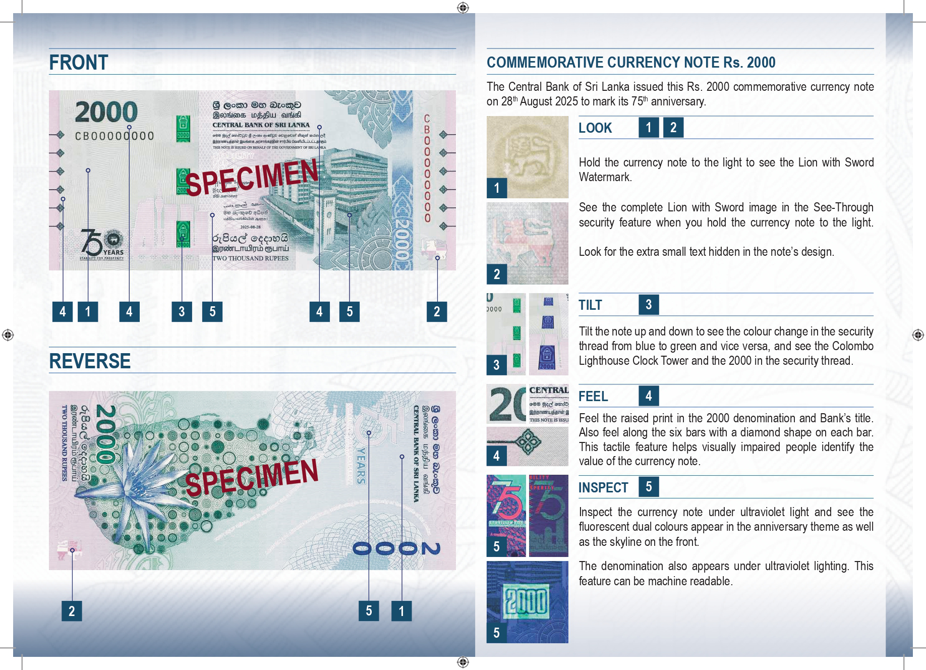 29 sierpnia 2025 r. Centralny Bank Sri Lanki (ශ්රී ලංකා මහ බැංකුව / இலங்கை மத்திய வங்கி / Central Bank of Sri Lanka, CBSL) poinformował o emisji banknotu okolicznościowego z okazji 75-lecia działalności CBSL