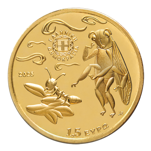 30 września 2025 r. Ministerstwo Finansów (Υπουργείο Οικονομικών) wyemituje monetę kolekcjonerską serii Bajki Ezopa – Konik polny i mrówka