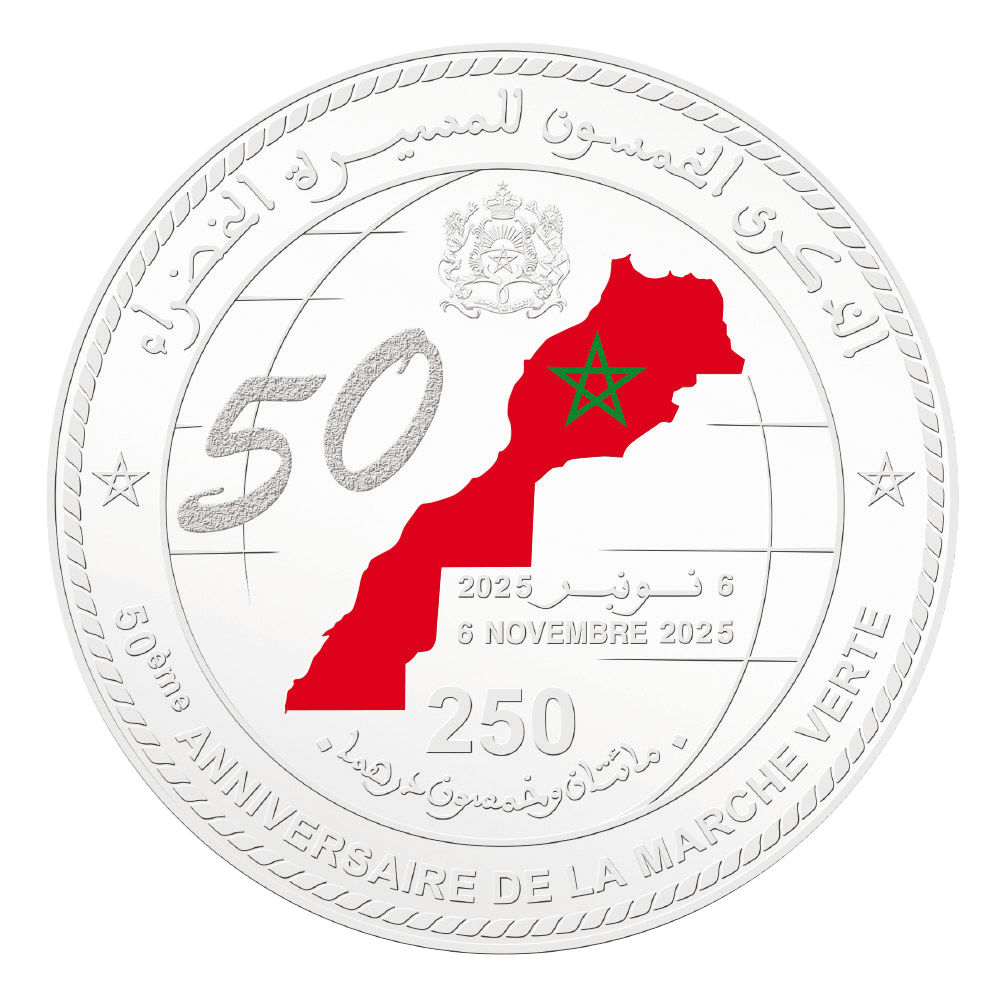 6 listopada 2025 r. Bank Maroka (بنك المغرب, Bank Al-Maghrib) wyemitował monetę kolekcjonerską z okazji 50. rocznicy Zielonego Marszu