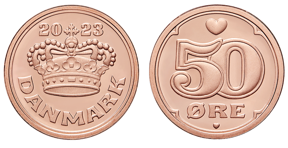 Moneta o nominale 50 øre zachowała swój obecny wygląd, ponieważ nie zawiera żadnych symboli odnoszących się do obecnego monarchy.
