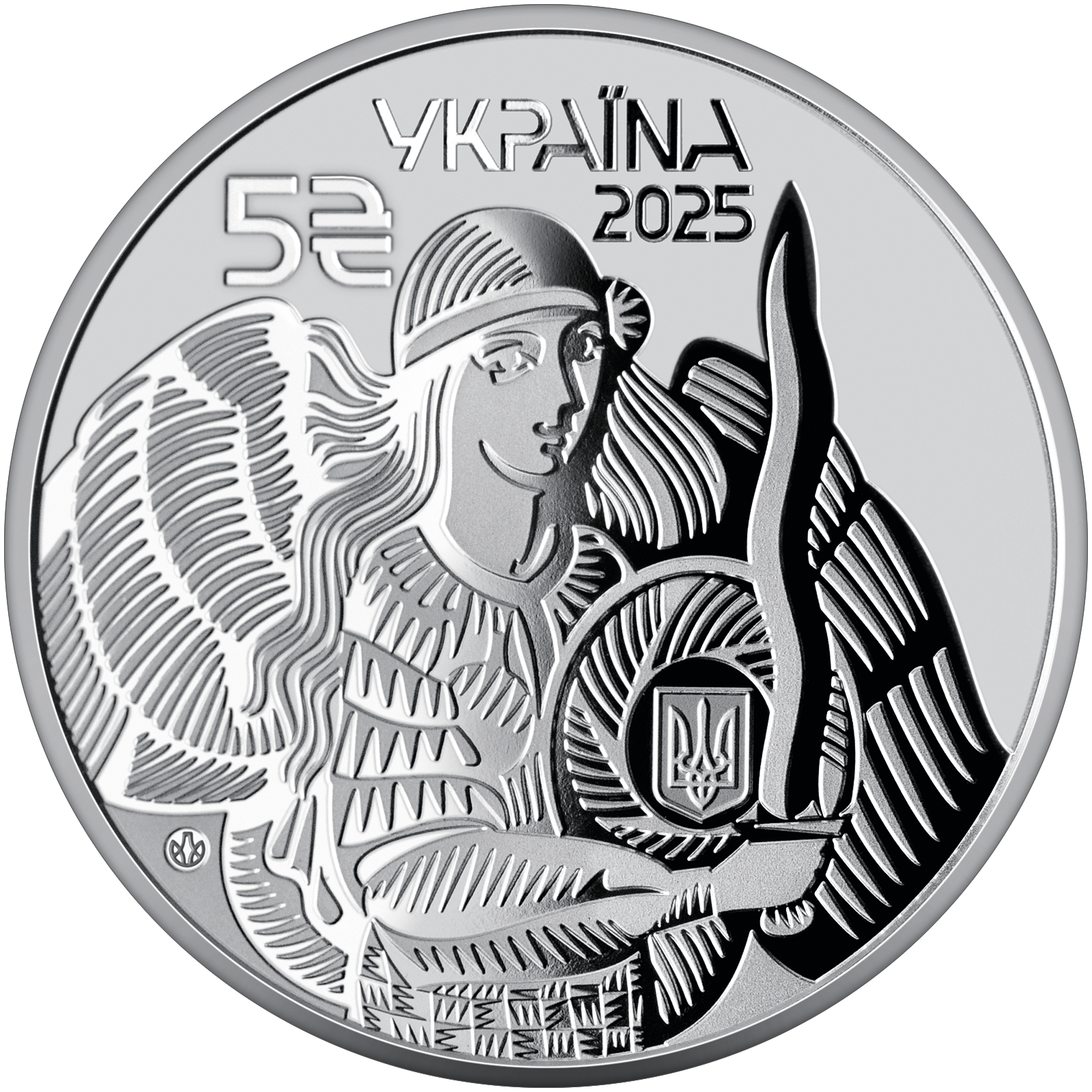 – u góry nazwa państwa i rok emisji: УКРАЇНА / 2025