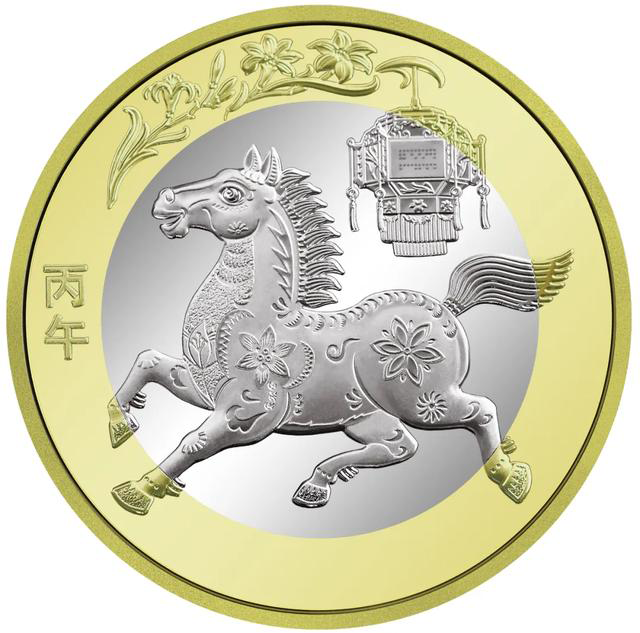 – z lewej strony przy krawędzi znak, w pionie: 丙午 – ognisty koń (trzeci znak niebiańskiego pni i siódmy znak ziemskich gałęzi, oznaczający 43. rok 60-letniego cyklu chińskiego kalendarza – 2026 r.)