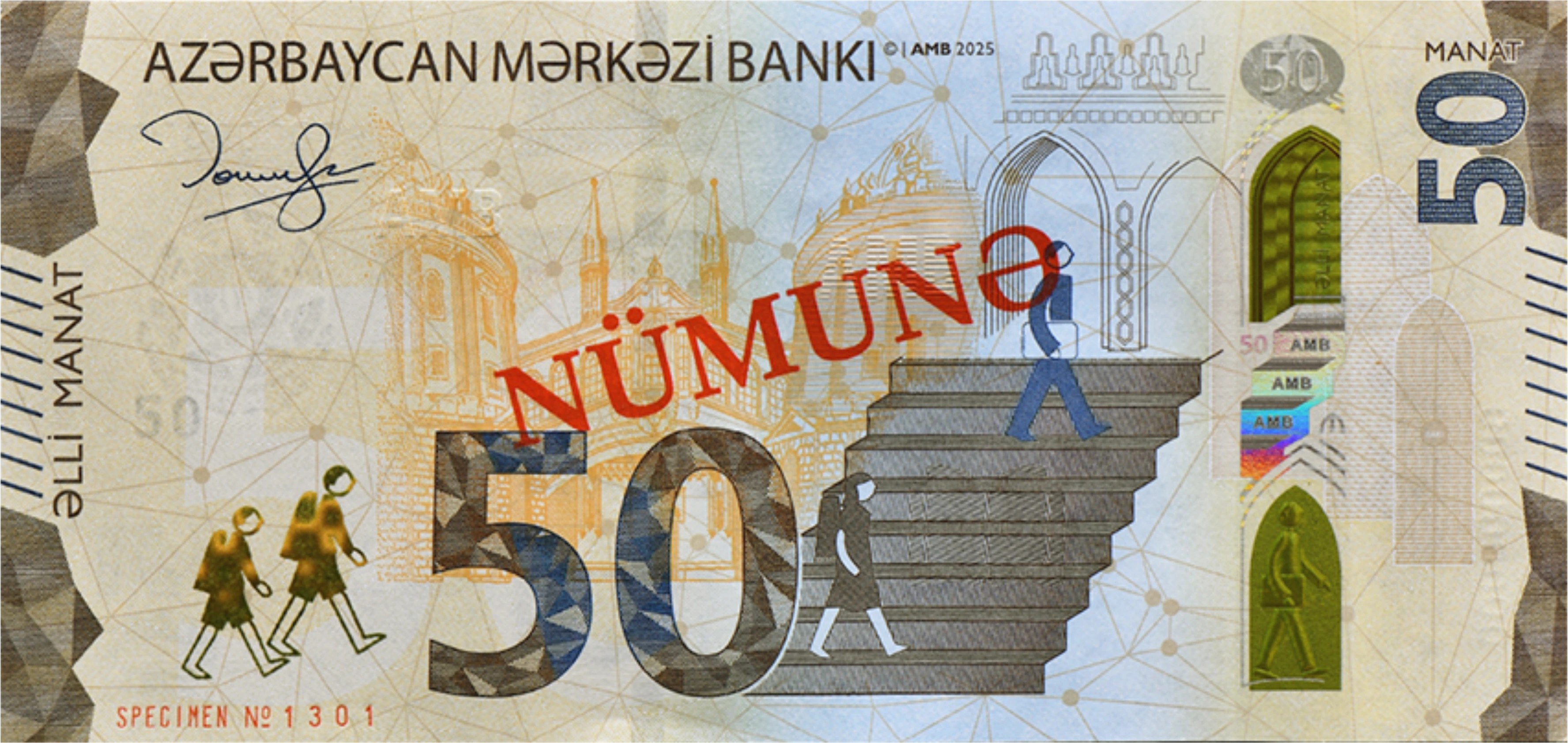 25 grudnia 2025 r. Bank Centralny Republiki Azerbejdżanu (Azərbaycan Respublikasının Mərkəzi Bankı, AMB) poinformował o wprowadzeniu do obiegu zaktualizowane banknotu o nominale 50 manatów