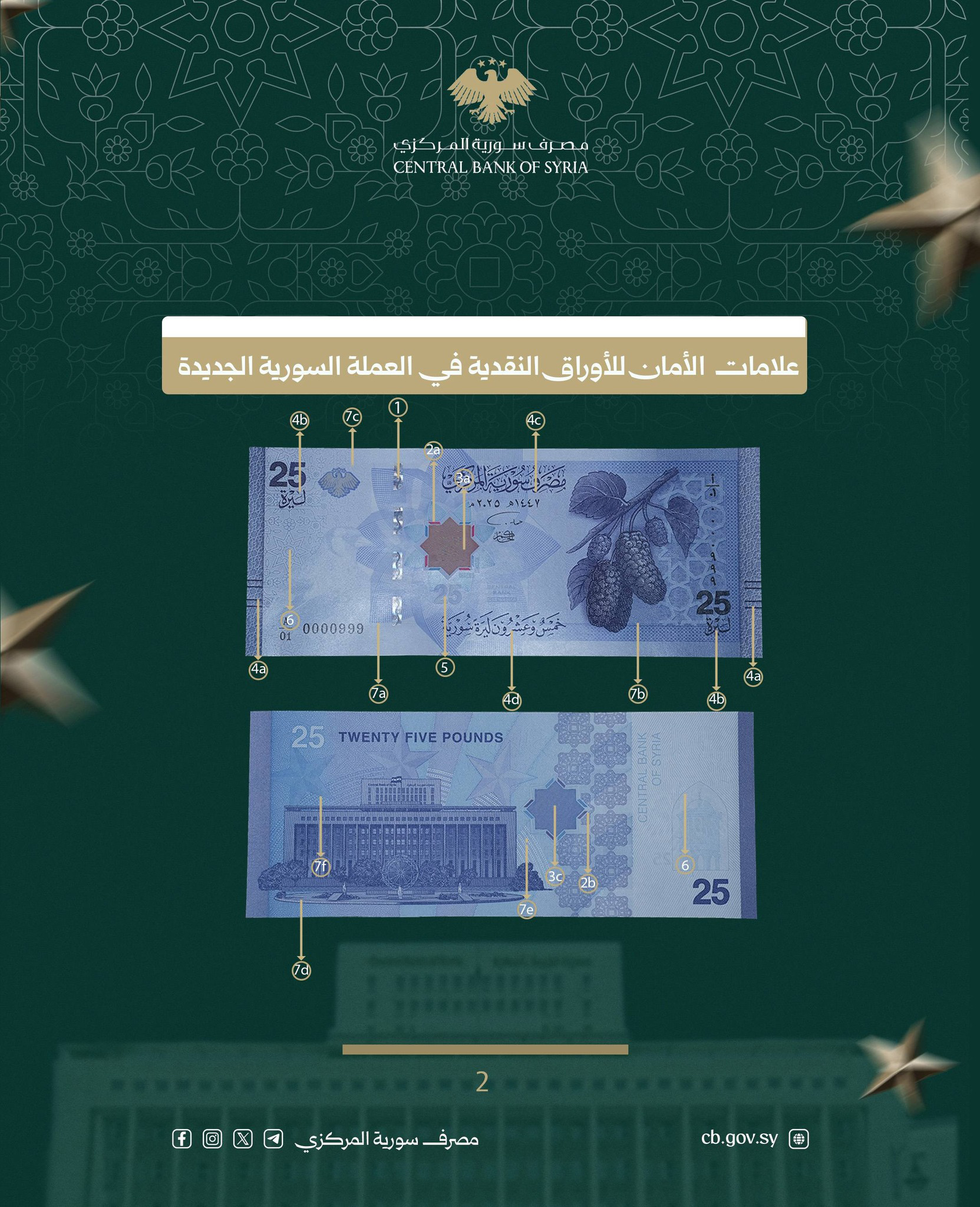 Bank Centralny Syrii (مصرف سورية المركزي, CBS) opublikował opis zabezpieczeń nowych banknotów wprowadzonych do obiegu 1 stycznia 2026 r.
