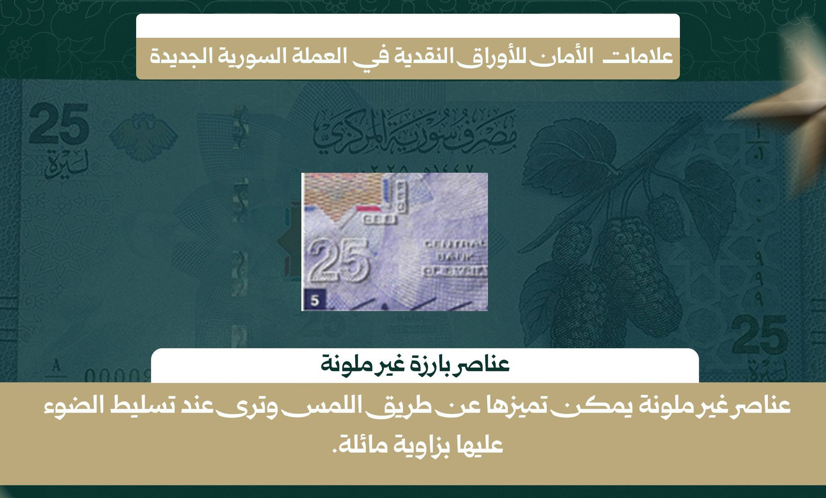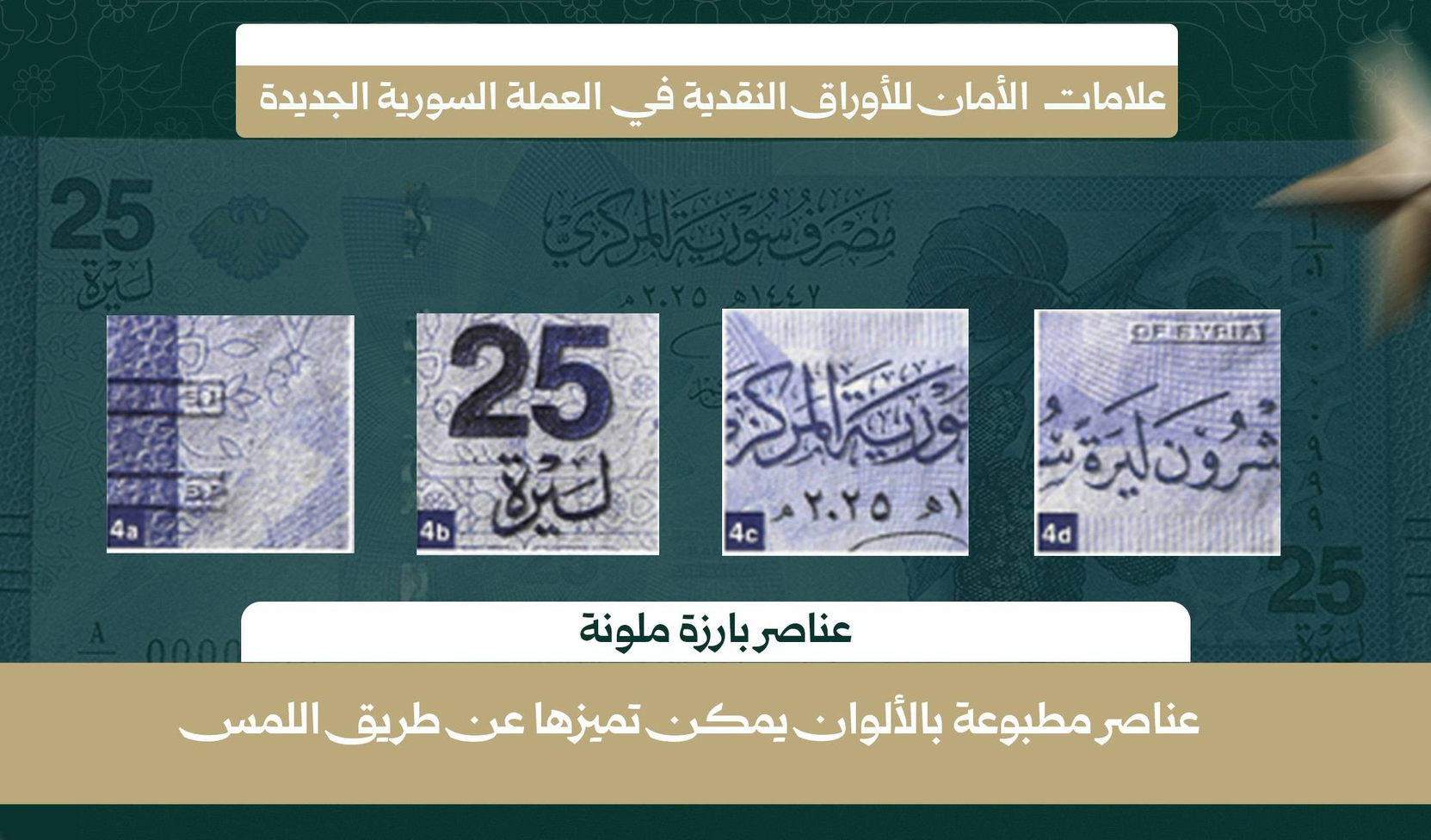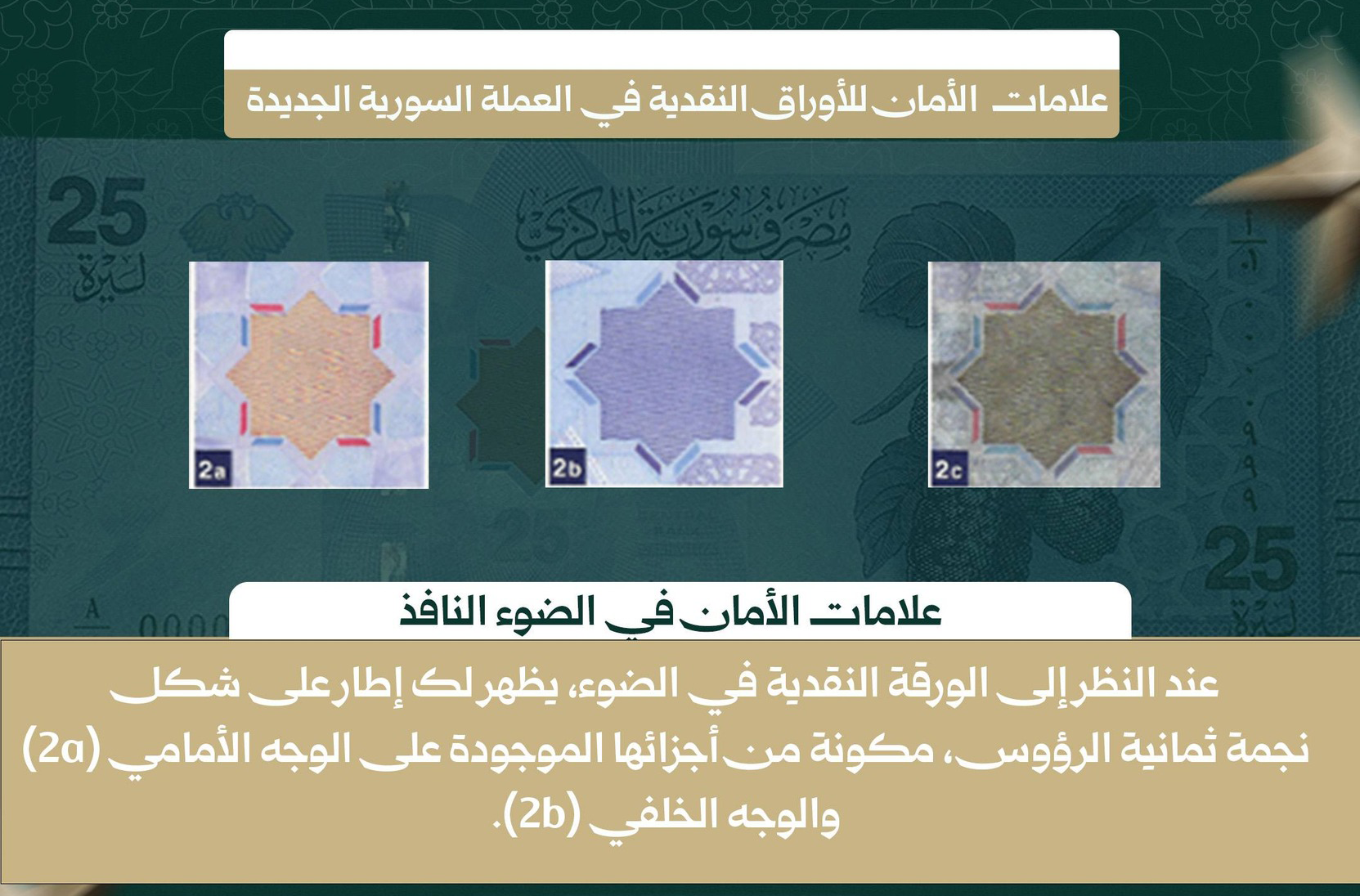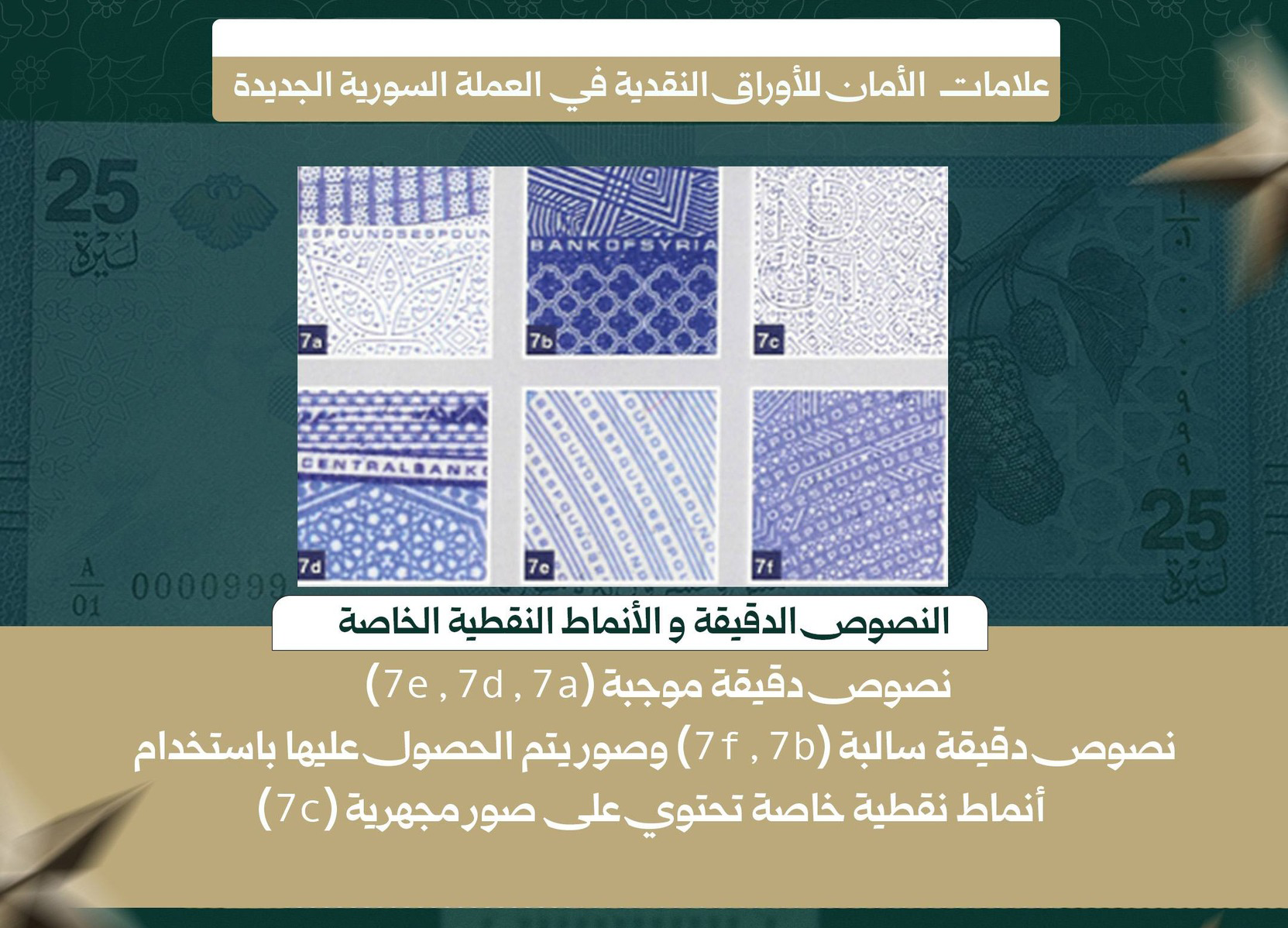 Wykaz zabezpieczeń na przykładzie nominału 25 funtów syryjskich