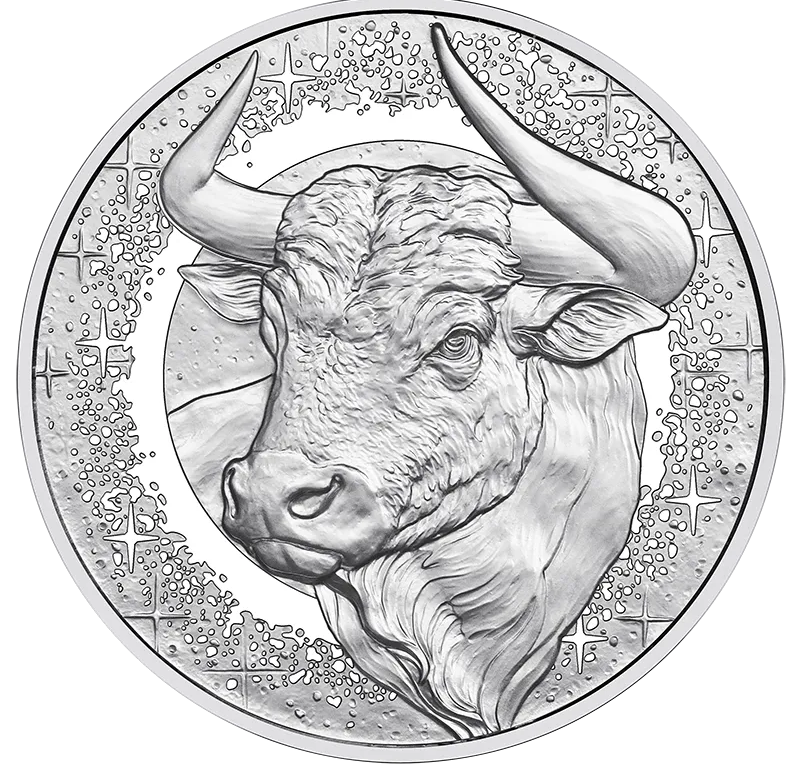25 marca 2026 r. Mennica Austriacka (Münze Österreich) wyemituje monetę kolekcjonerską serii Gwiazdozbiory – Byk euro, евро, ευρώ, euró, eiro, euras, ewro,