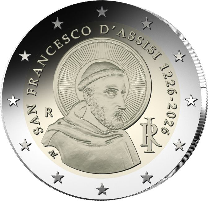 1 kwietnia 2026 r. Ministerstwo Gospodarki i Finansów (Ministero dell’Economia e delle Finanze, MEF) wyemitowało monetę okolicznościową 800. rocznica śmierci św. Franciszka z Asyżu